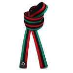 Celebrate African heritage with this striking martial arts belt, proudly featuring the iconic Pan-African colors—red, black, and green—on both the front and back. These colors symbolize unity, strength, and pride, making this belt a powerful statement of cultural significance and personal achievement.