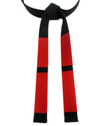 This top-tier 10th Dan Kenpo black belt is crafted for those who demand the finest in quality and design. Featuring two sets of 5" red cotton sleeve precisely positioned 1" from the belt's end, it delivers a clean and distinctive look. Unlike embroidered alternatives, these stripes are made from 100% red cotton, adding a unique touch of authenticity.