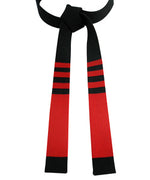 This top-tier 8th Dan Kenpo black belt is crafted for those who demand the finest in quality and design. Featuring a 5" red cotton sleeve and three sets of ½" red cotton stripes precisely positioned 1" from the belt's end, it delivers a clean and distinctive look. Unlike embroidered alternatives, these stripes are made from 100% red cotton, adding a unique touch of authenticity.