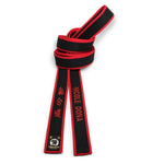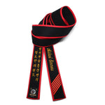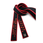 Our best-selling master belt, this exquisite border belt has earned the admiration and respect of masters worldwide. A meticulously trimmed and stitched red border frames the sleek black belt on both front and back, showcasing an unparalleled level of craftsmanship. With its superb construction and unmatched quality, this belt stands out as a pinnacle of design and durability. The artistry in every detail is unmistakable—you simply have to experience it to believe it.