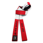 Experience the perfect fusion of tradition and versatility with this truly unique belt. Combining the elegance of a red and white panel master design on the front with the timeless simplicity of a solid black belt on the back, this belt offers the best of both worlds.