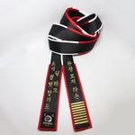 This highly-specialized Master & Shihan Belt requires expert craftsmanship, making it the best-selling Shihan belt. The design features a sleek black inner panel on both the front and back, complemented by alternating red and white panel borders on the outside. Enhanced with beautiful hand embroidery on both ends, this belt combines tradition with elegance.